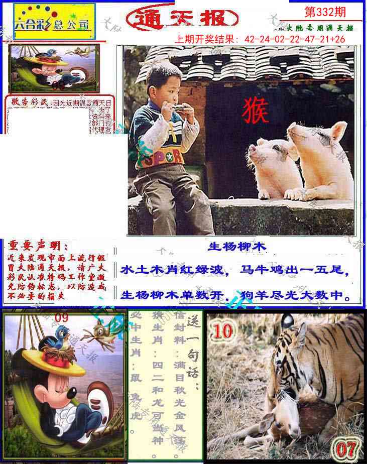332期:复式六肖【猴狗鼠猪鸡虎】开:0中 |